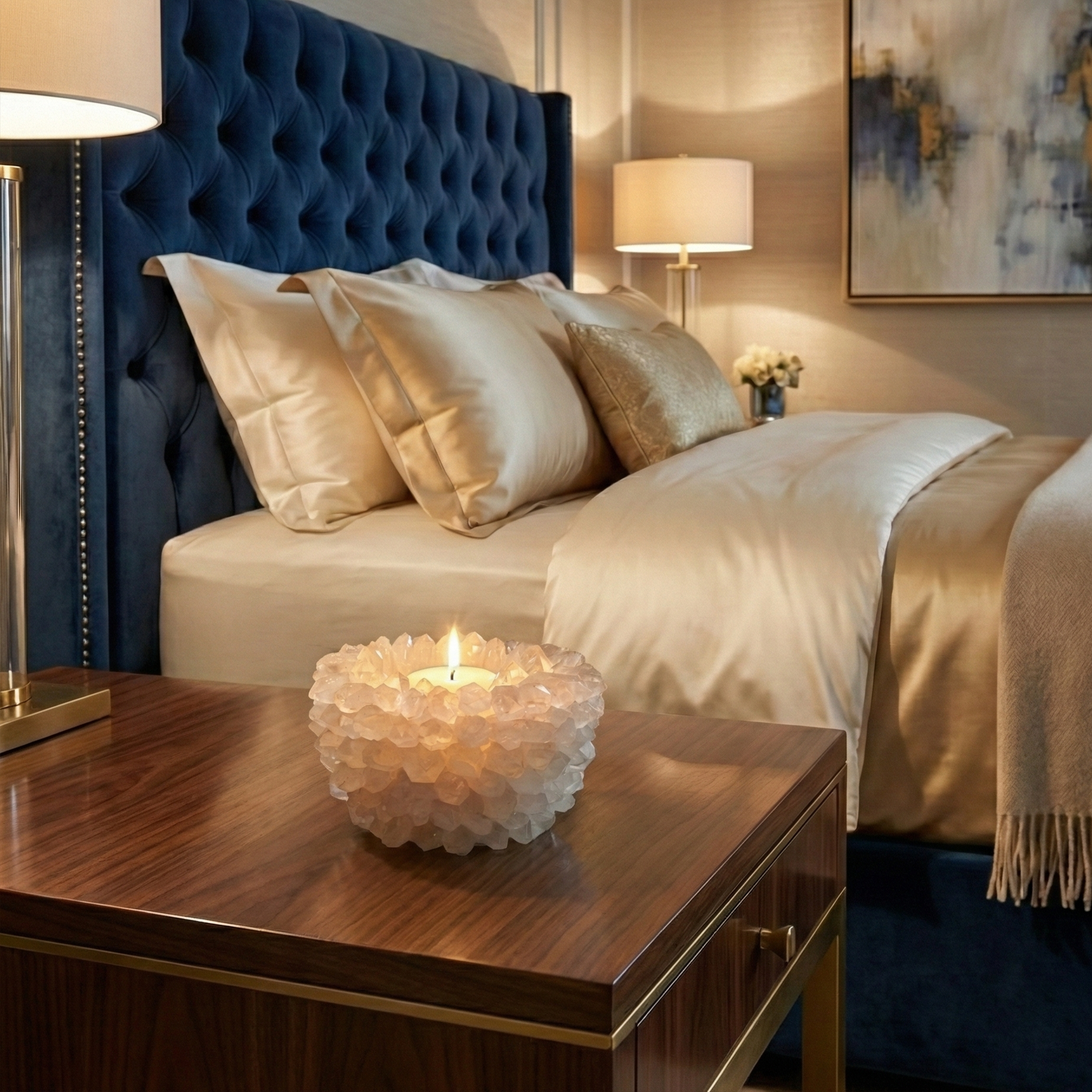 Sacred Stone Collective is a curated body of crystal design—handmade bowls, sculptural lamps, gemstone mirrors, and collector-grade mineral specimens. Each piece is selected for its natural character, refined by artisan hands, and offered as functional art for the home and the ritual.