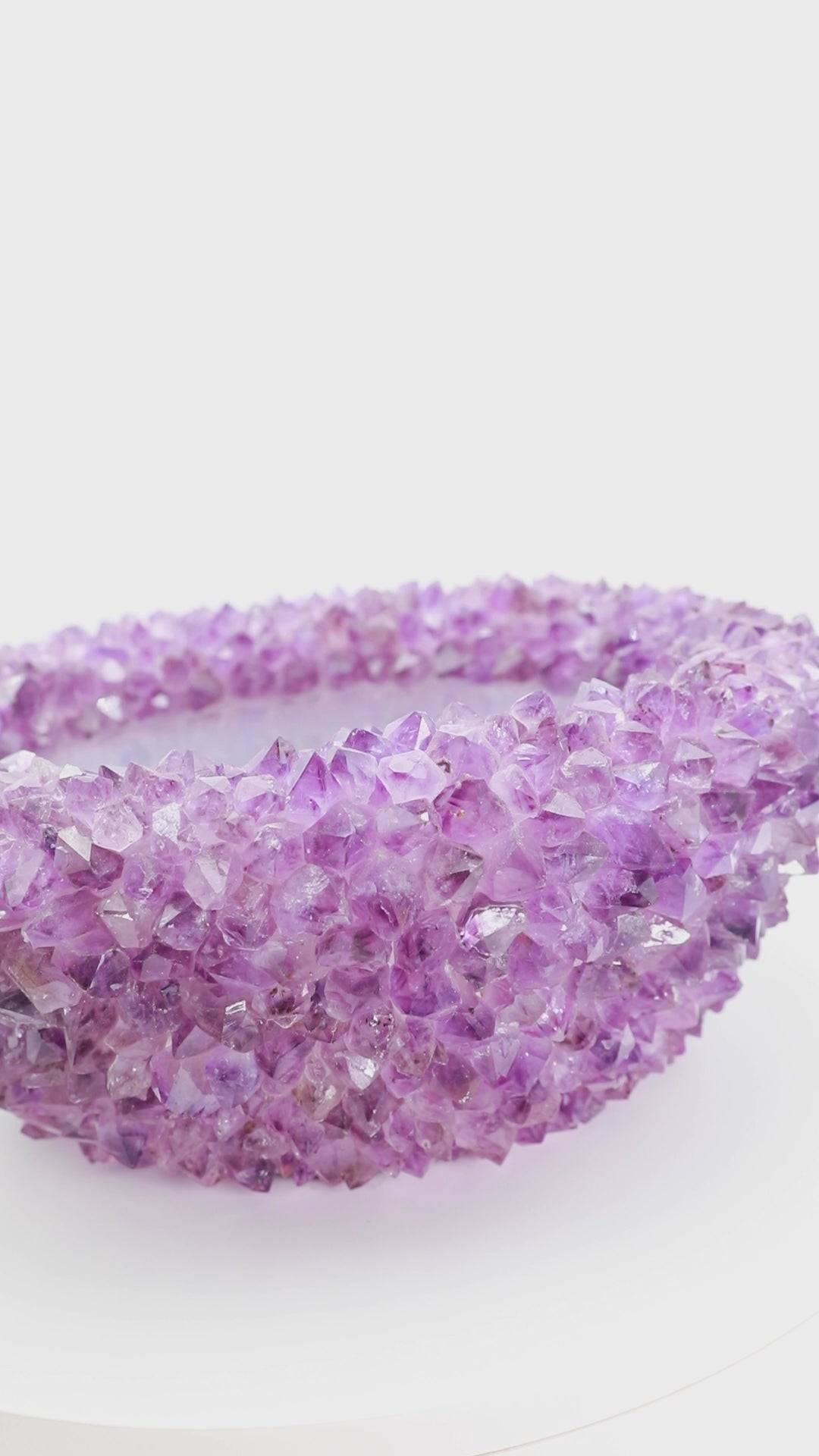 Whether placed in a meditation room, wellness studio, or curated interior, this amethyst crystal bowl serves as both a powerful energetic tool and a striking decorative object. Its natural beauty and depth make it perfect for holding jewelry, ritual items, herbs, or tumbled stones.